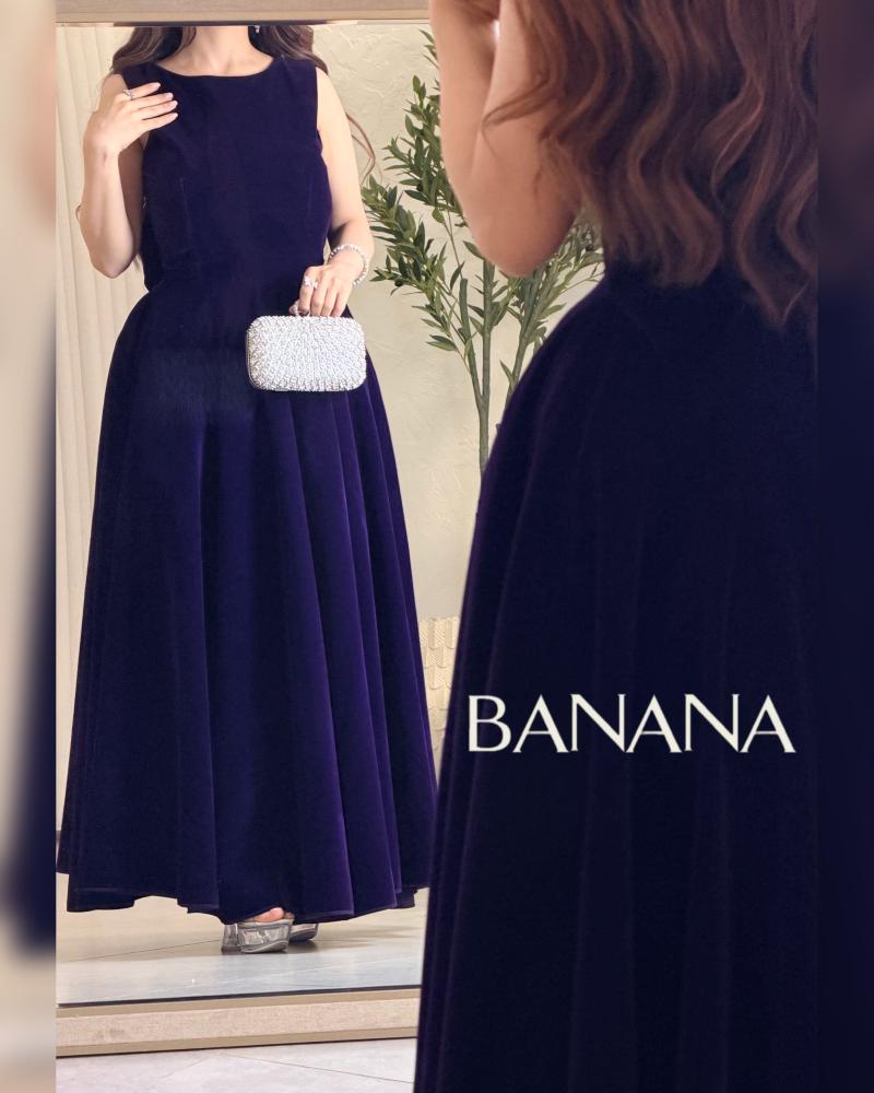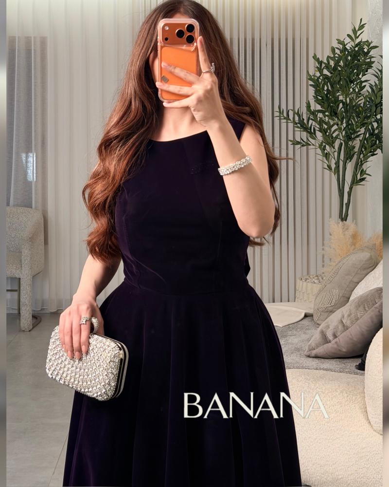 ‏فستان مخمل موف غامق ناعم مطعم بفينكة من الخلف